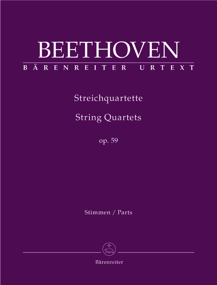 LOS TRES CUARTETOS DEL OPUS 59 SON REALMENTE MONUMENTALES: COMPUESTOS EN 1.806 Y DEDICADOS AL EMBAJADOR RUSO EN VIENA EL MELOMANO PRINCIPE RAZUMOVSKY MECENAS DE BEETTHOVEN Y UN MUSICO AMATEUR QUE TOCABA EL VIOLIN. ESTAMOS ANTE OBRAS DE CAMARA DE DIFICULTAD EXTREMA DE EJECUCION SOLO APTAS PARA VIRTUOSOS QUE ERAN PRECISAMENTE LO QUE TENIA A SU SERVICIO ESTE DIPLOMATICO TAN CULTO EN SU LUJOSA RESIDENCIA. YO LOS VEO BASTANTES ESOTERICOS Y MISTERIOSOS. EN ELLOS YA VA APARECIENDO EL CRIPTICO BEETHOVEN DE SUS ULTIMOS SEIS CUARTETOS LOS QUE ELABORO DE MANERA PACIENTE Y GENIAL Y CON MUCHISIMO SUFRIMIENTO DE 1.824 AL 1.827 AÑO DE SU MUERTE. SIN LUGAR A DUDA LOS "16 MAS 1" SON LA CUMBRE DEL ARTE DE TODOS LOS TIEMPOS Y SOLO EQUIPARABLES A LAS OBRAS PARA TECLADO DE JSB Y EN CONCRETO SU ARTE DE LA FUGA Y SU CLAVE BIEN TEMPERADO Y SUS VARIACIONES GOLDBERG AUNQUE PARA MI BEETHOVEN LAS SUPERA EN PROFUNDIDAD, HUMANISMO Y COMPLEJIDAD Y EN PROYECCION FUTURA PORQUE ENTRE OTRAS COSAS A FECHA DE HOY TODAVIA NO TENEMOS CAPACIDAD DE ENTENDERLOS. LES PONGO POR ALBAN BERG QUARTET CASI NADA DEL OPUS 59 EL NUMERO 3 Y QUE LO DISFRUTEN.