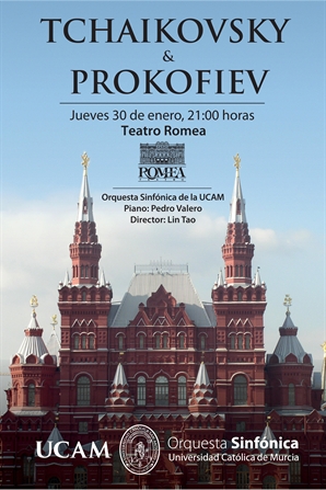 MUY BUENA PINTA ESTE CONCIERTO DE LA ORQUESTA SINFONICA DE LA UCAM PROGRAMADO PARA ESTE JUEVES 30 DE ENERO A LAS 21H EN EL BELLO TEATRO ROMEA DE MURCIA: EL CONCIERTO NUMERO 1 PARA PIANO DE TCHAIKOVSKY ENCIMA POR EL MAGNIFICO SOLISTA PEDRO VALERO Y LA SUITE NUMERO 2 DEL BALLET ROMEO Y JULIETA DE PROKOFIEV NO ESTA NADA MAL. A LA BATUTA LIN TAO UN DIRECTOR CHINO AFINCADO EN RUSIA. PRECIOS MODERADOS CON DESCUENTOS.